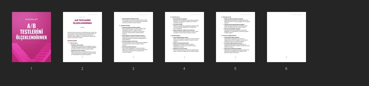 Müşterilerinizin tüm kampanyalarda performansı güçlü tutan net adımları izleyerek başarılı A/B testlerini ölçeklendirmelerine yardımcı olacak kontrol listesi.