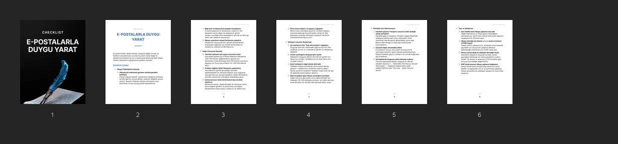Müşterilerinizin dikkatini çekmek, güven oluşturmak ve tekliflerinin mükemmel çözüm gibi görünmesini sağlamak için e-postalarda hikayeleştirmeyi kullanmalarına yardımcı olacak kontrol listesi.
