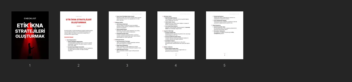 Müşterilerinizin güven oluşturan, başkalarına yardımcı olan ve uzun vadeli başarıyı destekleyen adil ve saygılı bir şekilde etkiyi kullanmalarına rehberlik edecek kontrol listesi.
