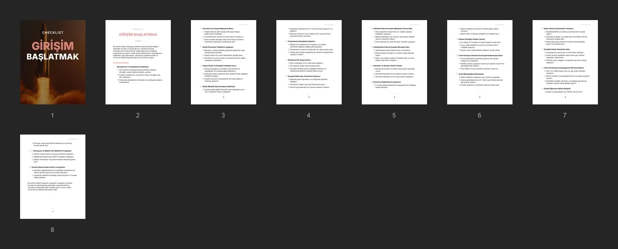 Müşterilerinizin, gelir elde etmek ve kaynakları yönetmek için pratik stratejiler kullanarak, dış finansmana ihtiyaç duymadan girişimlerini kurmalarına ve büyütmelerine yardımcı olacak kontrol listesi.