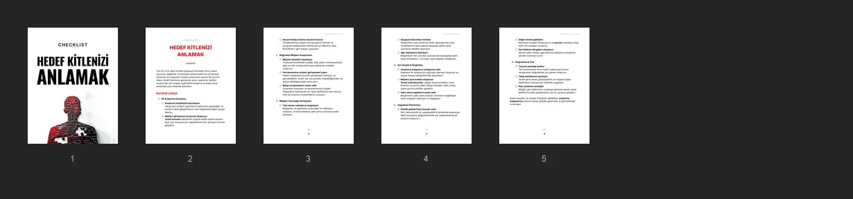Müşterilerinizin hedef pazarlarını araştırmaları ve anlamaları konusunda onlara rehberlik edecek ve böylece gerçek anlamda bağ kuran ve satış yapan teklifler oluşturmalarını sağlayacak kontrol listesi.