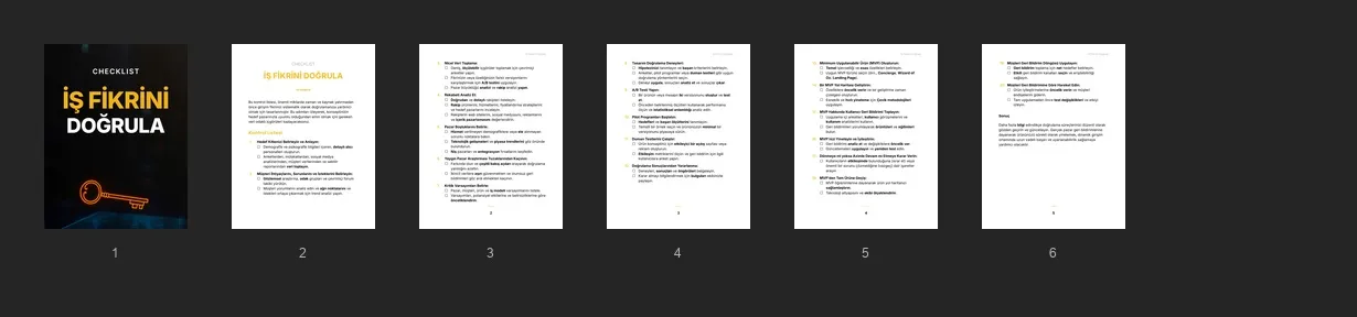 Müşterilerinizin, pazar araştırması, varsayım testleri ve müşteri geri bildirimlerini kullanarak iş fikirlerini doğrulamalarına ve daha akıllıca kararlar almalarına yardımcı olacak kontrol listesi.