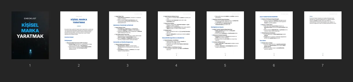 Müşterilerinizin öne çıkmaları, güven oluşturmaları ve daha fazla iş fırsatı çekmeleri için uygulanabilir adımlarda rehberlik ederek kişisel bir marka oluşturmalarına ve sürdürmelerine yardımcı olmak üzere tasarlanmış kontrol listesi.