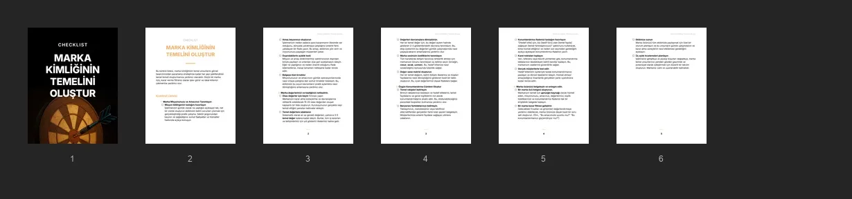 Müşterilerinize daha iyi pazarlamayı, daha güçlü mesajlaşmayı ve daha akıllı iş kararlarını destekleyen bir marka kimliği oluşturmak için net ve yapılandırılmış bir kontrol listesi sunun.