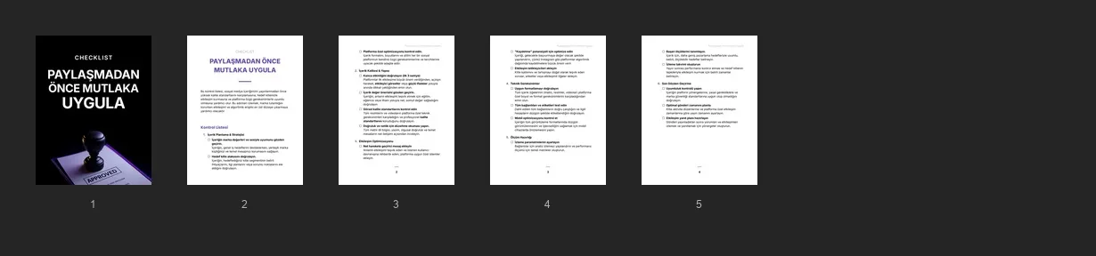 Müşterilerinizi, etkileşimi artıran, markaya özgü ve platform kurallarına uyan yüksek kaliteli sosyal medya içeriği yayınlama konusunda yönlendirecek kontrol listesi.