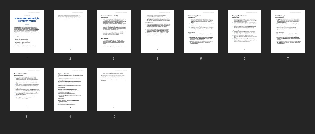Müşterilerinizin reklam sonuçlarını iyileştirmek, verilerle akıllı kararlar almak ve ücretli kampanyalardan daha iyi getiri elde etmek için yapay zekayı kullanmalarına yardımcı olmak üzere tasarlanmış istem paketi.