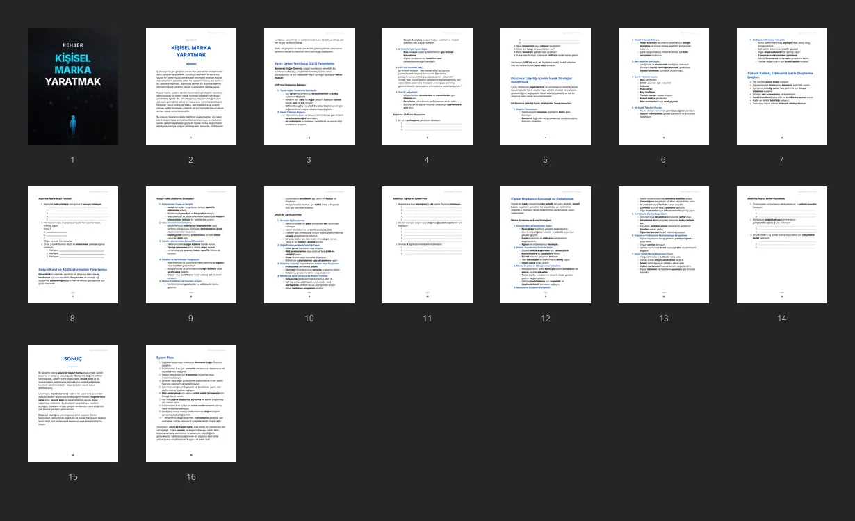 Müşterilerinizin benzersiz bir değer teklifi oluşturma, ilgi çekici içerik ve güvenilirlik oluşturmak ve etkilerini artırmak için ağ oluşturma stratejileriyle kişisel bir marka oluşturmalarına yardımcı olacak kılavuz.