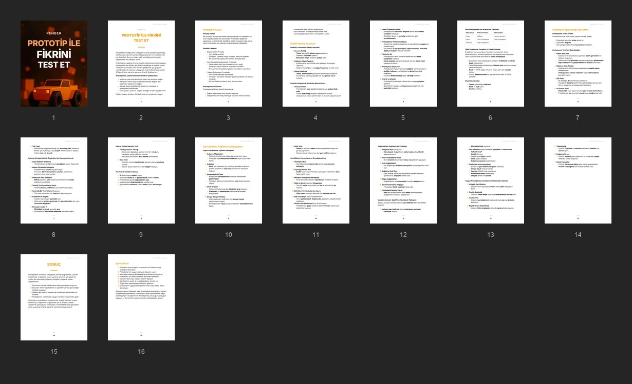 Müşterilerinizin fikirleri test etme, geri bildirim toplama ve daha iyi ürünler oluşturmak için kavramları geliştirme stratejileriyle başarılı prototipler oluşturmalarına yardımcı olmak için tasarlanmış kılavuz.