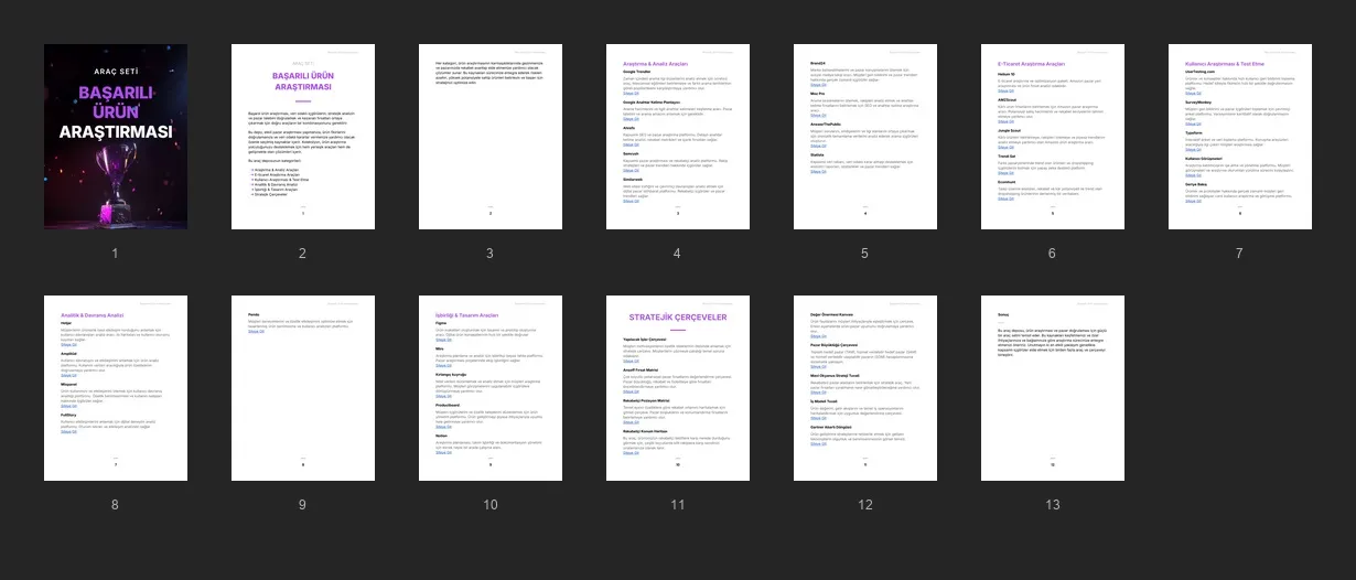 Müşterilerinizin başarılı ürün lansmanlarını garantilemek için pazar analizi, müşteri içgörüleri ve doğrulama stratejilerine yönelik kaynaklarla kazanan ürün araştırmaları yapmalarına yardımcı olmak üzere tasarlanmış araç seti.