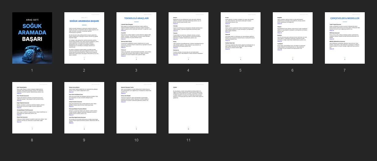 Müşterilerinizin satış otomasyonu, potansiyel müşteri takibi ve itirazları ele alma ve anlaşmaları kapatma konusunda kanıtlanmış çerçevelerle soğuk aramayı geliştirmelerine yardımcı olmak için tasarlanmış araç seti.