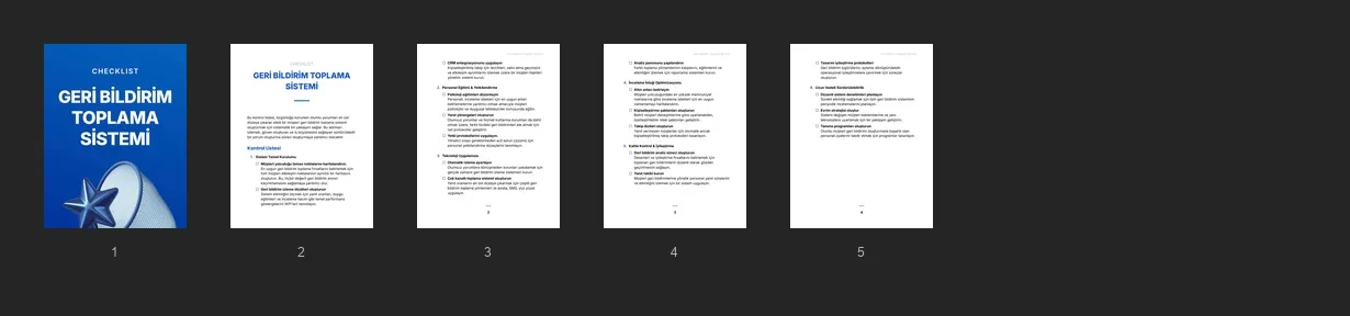 Müşterilerinizin hizmetlerini iyileştirmek ve daha güçlü müşteri ilişkileri kurmak için yararlı bilgiler toplayan bir geri bildirim sistemi kurmalarına yardımcı olacak kontrol listesi.