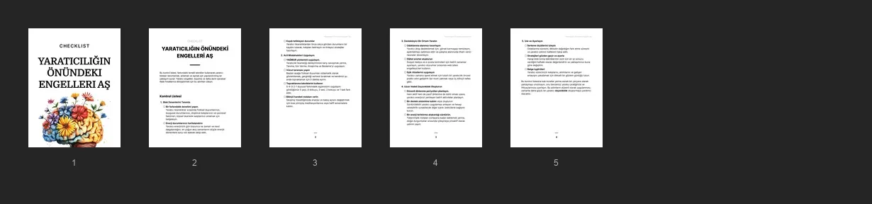 Müşterilerinizin odaklanmalarını, ilham almalarını ve üretken kalmalarını sağlayacak basit farkındalık adımlarını kullanarak yaratıcılık engellerini aşmalarına yardımcı olacak kontrol listesi.