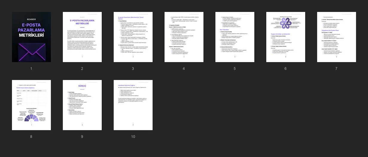 Müşterilerinizin, pratik alıştırmalar ve stratejiler aracılığıyla e-posta pazarlama ölçümlerinde uzmanlaşmalarına yardımcı olmak, kampanyaları optimize etmelerini ve gerçek sonuçlar elde etmelerini sağlamak için tasarlanmış çalışma kitabı.