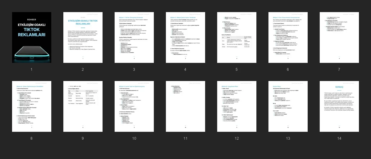 Müşterilerinizin, ilgi çekici içerik, sağlam tasarım ve hedef kitle odaklı optimizasyon için kanıtlanmış stratejilerle yüksek dönüşüm sağlayan TikTok reklamları oluşturmasına yardımcı olacak kılavuz.