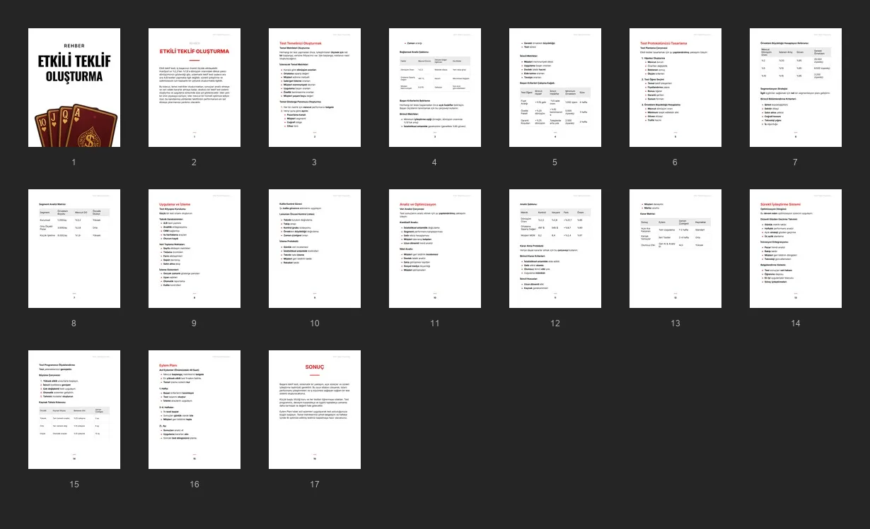 Müşterilerinizin dönüşümleri, satışları ve uzun vadeli iş büyümesini artırmak için eksiksiz bir teklif test sistemi oluşturmalarına ve optimize etmelerine yardımcı olacak kılavuz.