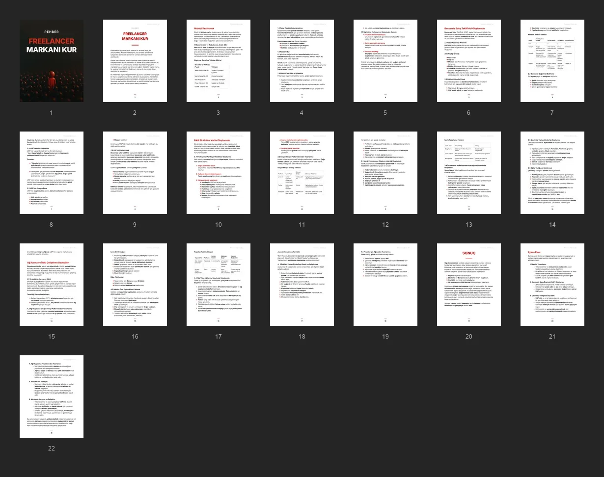 Müşterilerinizin serbest çalışan olarak güçlü bir kişisel marka oluşturmalarına yardımcı olacak, kendi nişlerini bulmalarına ve çevrimiçi varlıklarını geliştirmelerine yönelik stratejiler içeren bir kılavuz.