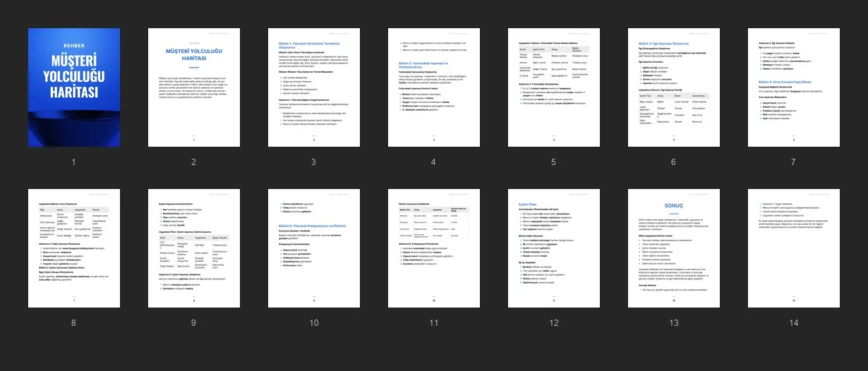 Müşterilerinizin, temas noktalarını optimize etme, etkileşimi artırma ve dönüşümleri yönlendirme konusunda kanıtlanmış stratejilerle müşteri yolculuğunun tamamını haritalamasına yardımcı olacak kılavuz.
