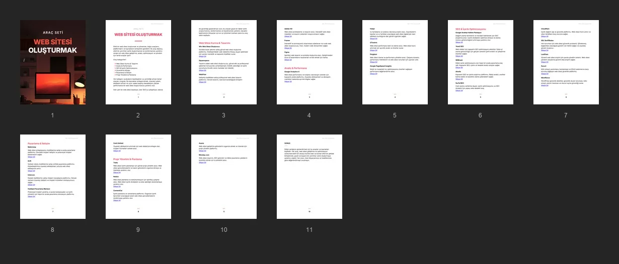 Arama sıralamalarını iyileştirmek, organik trafiği artırmak ve çevrimiçi görünürlüğü artırmak için tasarlanmış araçlar.